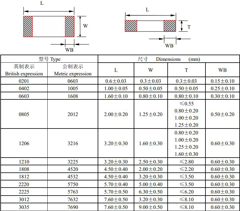 風(fēng)華貼片電容結(jié)構(gòu)尺寸圖如下