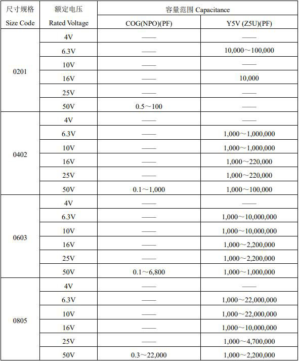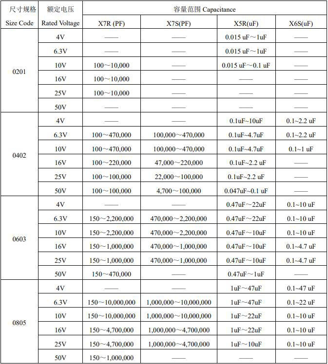 風(fēng)華貼片電容參數(shù)選購圖表如下