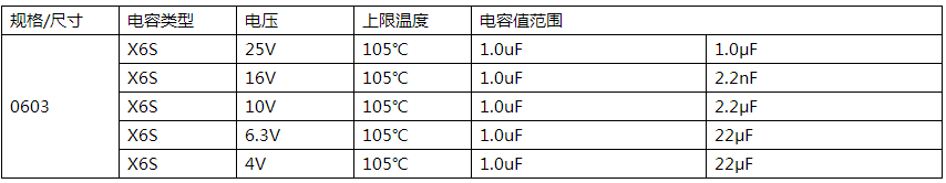 標(biāo)簽:國(guó)巨(YaGeo)CC X6S通用貼片電容0603尺寸參數(shù)