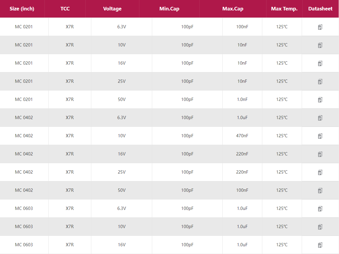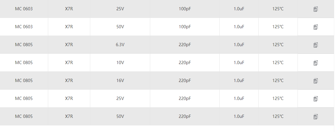 MC:X7R通用電容 產(chǎn)品型號:0201 0402 0603 0805